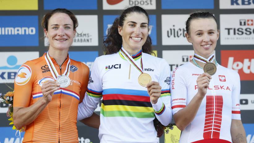 Katarzyna Niewiadoma zdobyła w belgijskim Leuven brązowy medal mistrzostw świata w kolarskim wyścigu ze startu wspólnego elity. Zwyciężyła po finiszu z niewielkiej grupy Włoszka Elisa Balsamo, a drugie miejsce zajęła Holenderka Marianne Vos.