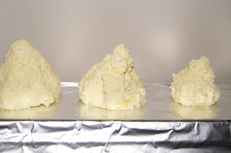 Z tak przygotowanej masy formujemy gomółki czyli owalne kopułki zwężające się ku górze w charakterystyczny dziubek.