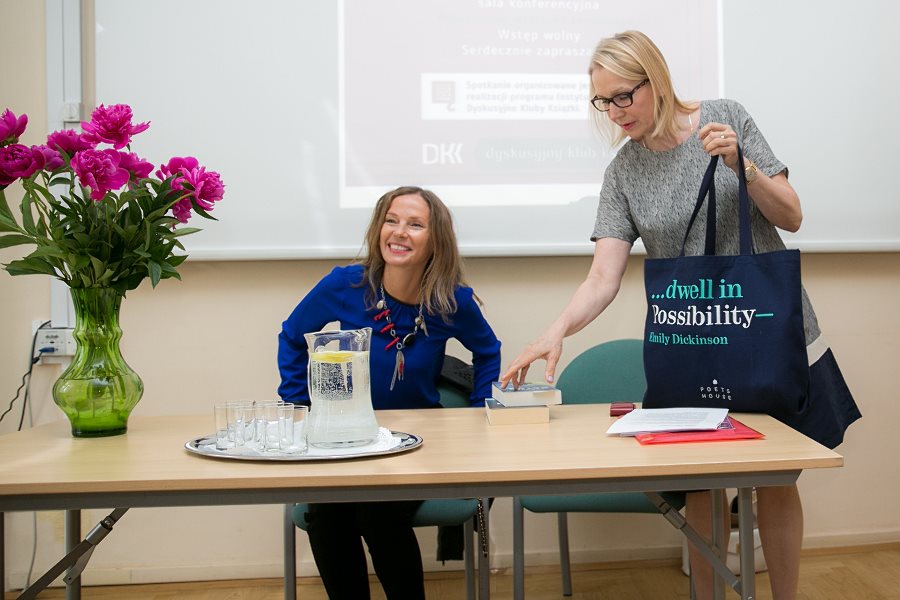 Spotkanie z Joanną Bator poprowadziła Krystyna Lenkowska, anglistka i rzeszowska poetka, która zażartowała, że w tej sukience, w której odbierała nagrodę NIKE za powieść „Ciemno, prawie noc”, może doczekamy się jej z Literacką Nagrodą Nobla.