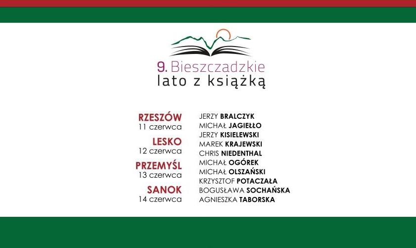 W dziewiątej edycji Bieszczadzkiego lata z książką swój udział potwierdzili: Marek Krajewski, laureat Paszportu Polityki, poczytny autor kryminałów o Eberhardzie Mocku, pracowniku wrocławskiego Prezydium Policji; poeta i eseista Michał Jagiełło, przez lata zawodowo związany z TOPR-em, a potem jako dyrektor z Biblioteką Narodową; ceniony językoznawca prof. Jerzy Bralczyk, a także jeden z najbardziej cenionych fotografów europejskich - Chris Niedenthal. Z publicznością spotka się również Michał Ogórek, satyryk, felietonista i krytyk filmowy.