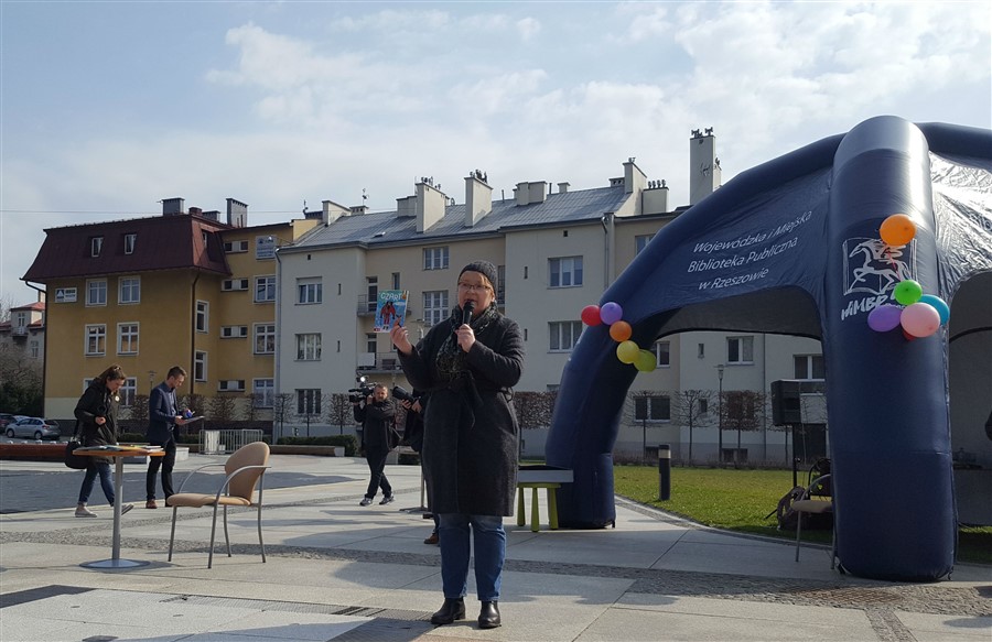 - Zachęcenie dzieci do uczestnictwa w tej akcji to wspaniały gest ze strony nauczycieli i opiekunów w kierunku naszej biblioteki i rozwoju czytelnictwa – podkreśliła Barbara Chmura, dyrektor Wojewódzkiej i Miejskiej Biblioteki Publicznej w Rzeszowie podczas otwarcia happeningu przy Fontannie Multimedialnej. – Tę wspaniałą akcję wymyśliła pani prof. Alicja Ungeheuer-Gołąb. Dzięki niej i jej studentom tworzymy razem Najdłuższą Książkę Świata. W tym roku nasza książka przekroczy kilometr. Będzie liczyć prawie 1300 metrów. To ogromny sukces i dziękuję dzieciom za ich pracę. Każdy rysunek musiały samodzielnie wykonać, a wcześniej do tego przygotować się, czytając książkę.