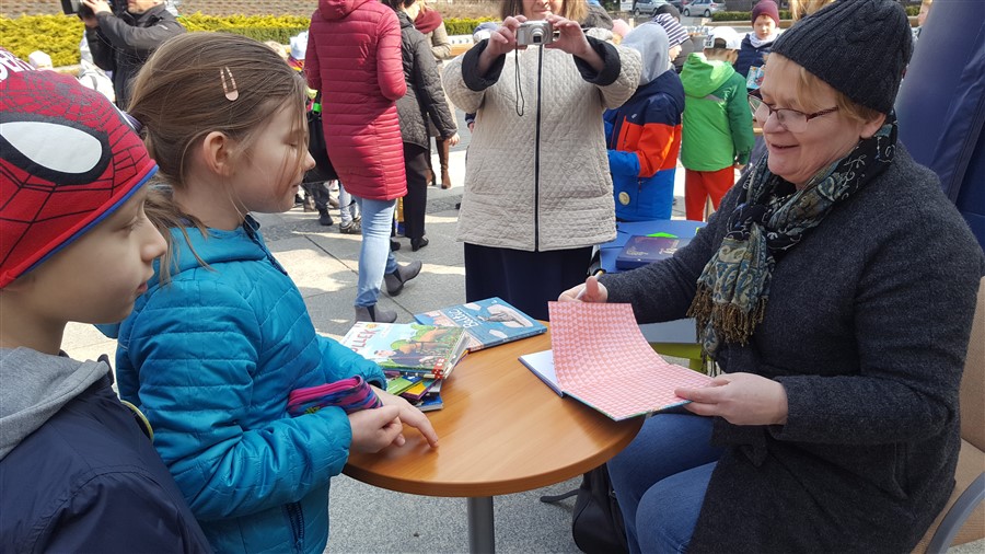 W tym roku tematem przewodnim rysunków był zwierzęcy bohater. W dodatku przy rzeszowskiej fontannie dzieci miały okazję spotkać autorkę bardzo lubianych książek, których głównymi bohaterami często są zwierzęta. Barbara Gawryluk, bo o niej mowa, do świata dziecięcej literatury przeniosła między innymi historię krakowskiego psa Dżoka, który czekając wiernie na swojego zmarłego już pana doczekał się w mieście Kraka nawet pomnika. – Dzieci uwielbiają tę książeczkę „Dżok. Legenda o psiej wierności” – mówi Monika Konefał, nauczycielka w Szkole Podstawowej nr 33 w Rzeszowie, której uczniowie również wzięli udział w tworzeniu Najdłuższej Książki Świata. – Z wykształcenia jestem polonistką i bardzo chętnie włączam się w akcje organizowane m.in. przez Wojewódzką i Miejską Bibliotekę Publiczną w Rzeszowie. Zależy mi na promocji czytelnictwa wśród dzieci i młodzieży. Dzieci czytają, młodzież czyta, ale wtedy, kiedy ktoś ich zachęci. Dzieciom trzeba pokazać, że czytanie to niesamowita przygoda. Mogą się tego nauczyć w domu, od rodziców, dziadków, ale wiele zależy także od nauczycieli. Jakich bohaterów rysowali moi uczniowie? Bardzo różnych. Na przykład wilka z książki „Ambaras”, bardzo mądrej opowieści, którą polecam wszystkim rodzicom, by przeczytali ją z dziećmi.