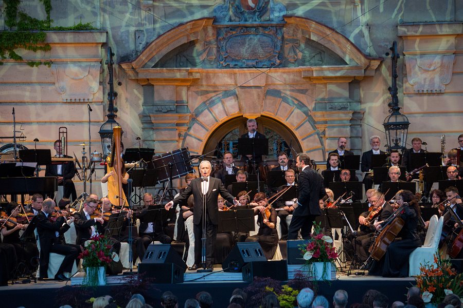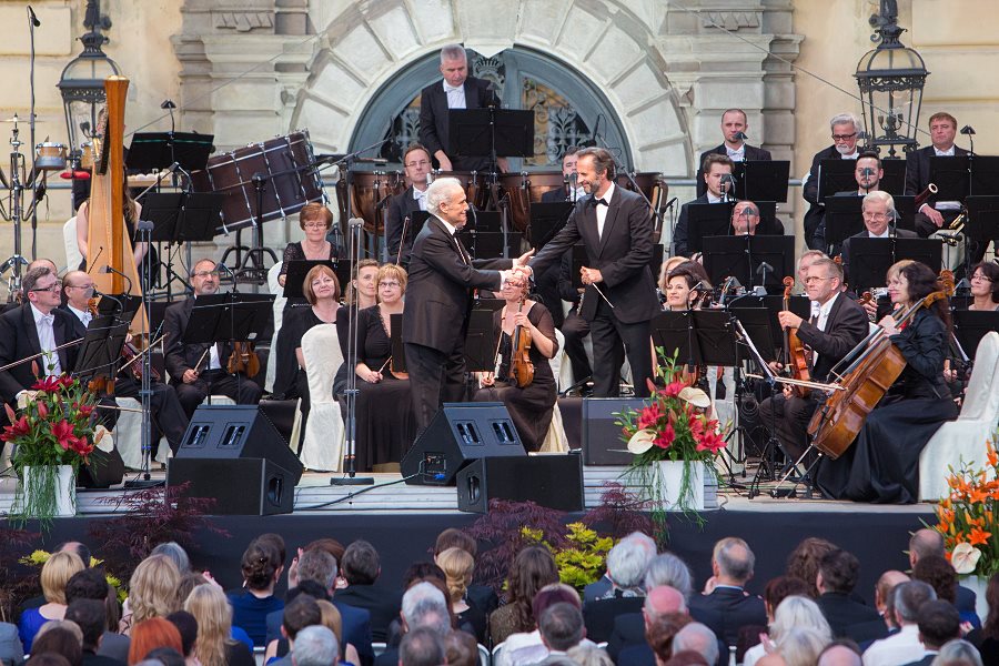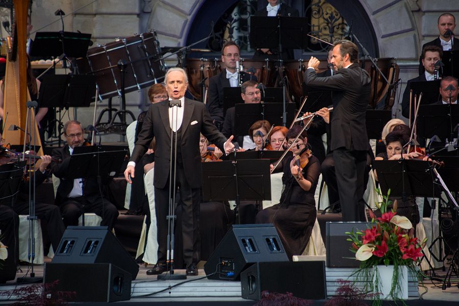 Po instrumentalnym wstępie naszych filharmoników na scenę wszedł sam José  Carreras. Brzmienie głosu artysty być może zaskoczyło niektórych słuchaczy – dziś Carreras ma niższy i głębszy w brzmieniu timbre. Szczególnie pięknie zabrzmiały w wykonaniu mistrza arie „El Eco De Tu Voz” i „Pel Ten Amor”. Powoli zapadał wieczór, a muzyka ogarnęła całą przestrzeń - widownię zgromadzoną przed łańcuckim pałacem i tę, która słuchała koncertu ulokowawszy się na krzesełkach turystycznych i kocach przed zamkową fosą.