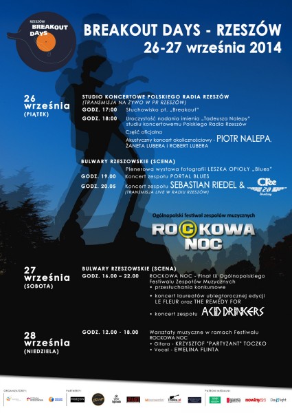 Wydarzenia w rzeszowskiej rozgłośni połączone są z imprezą miejską Breakout Days. Na scenie na Bulwarach od godz. 19:00 planowana jest plenerowa wystawa fotografii Leszka Opioły „Blues” (niedawno zmarłego w Nowym Jorku, pochodzącego z Rzeszowa fotografa i animatora sceny alternatywnej w latach osiemdziesiątych, menadżera rzeszowskich zespołów rockowych); następnie występ rzeszowskiego zespołu Portal Blues.