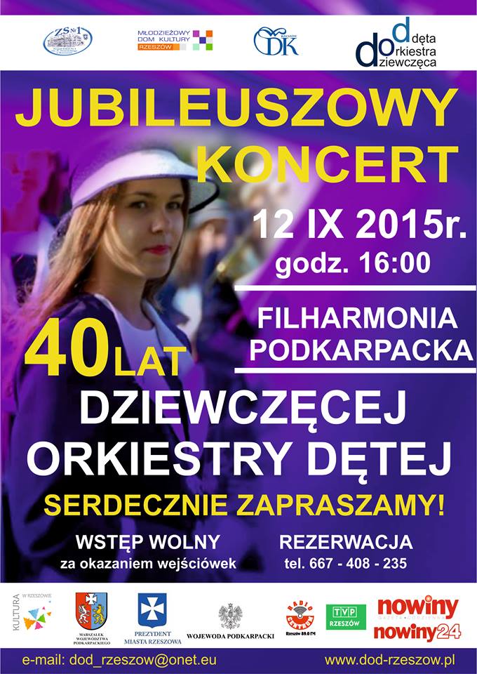 Dziewczęca Orkiestra Dęta działająca przy rzeszowskich ośrodkach kulturalnych, to jedyna tego rodzaju orkiestra w regionie. W tym roku obchodzi jubileusz 40-lecia swojego istnienia, i podsumuje go uroczystym koncertem, który odbędzie się 12 września 2015 roku w Filharmonii Podkarpackiej.