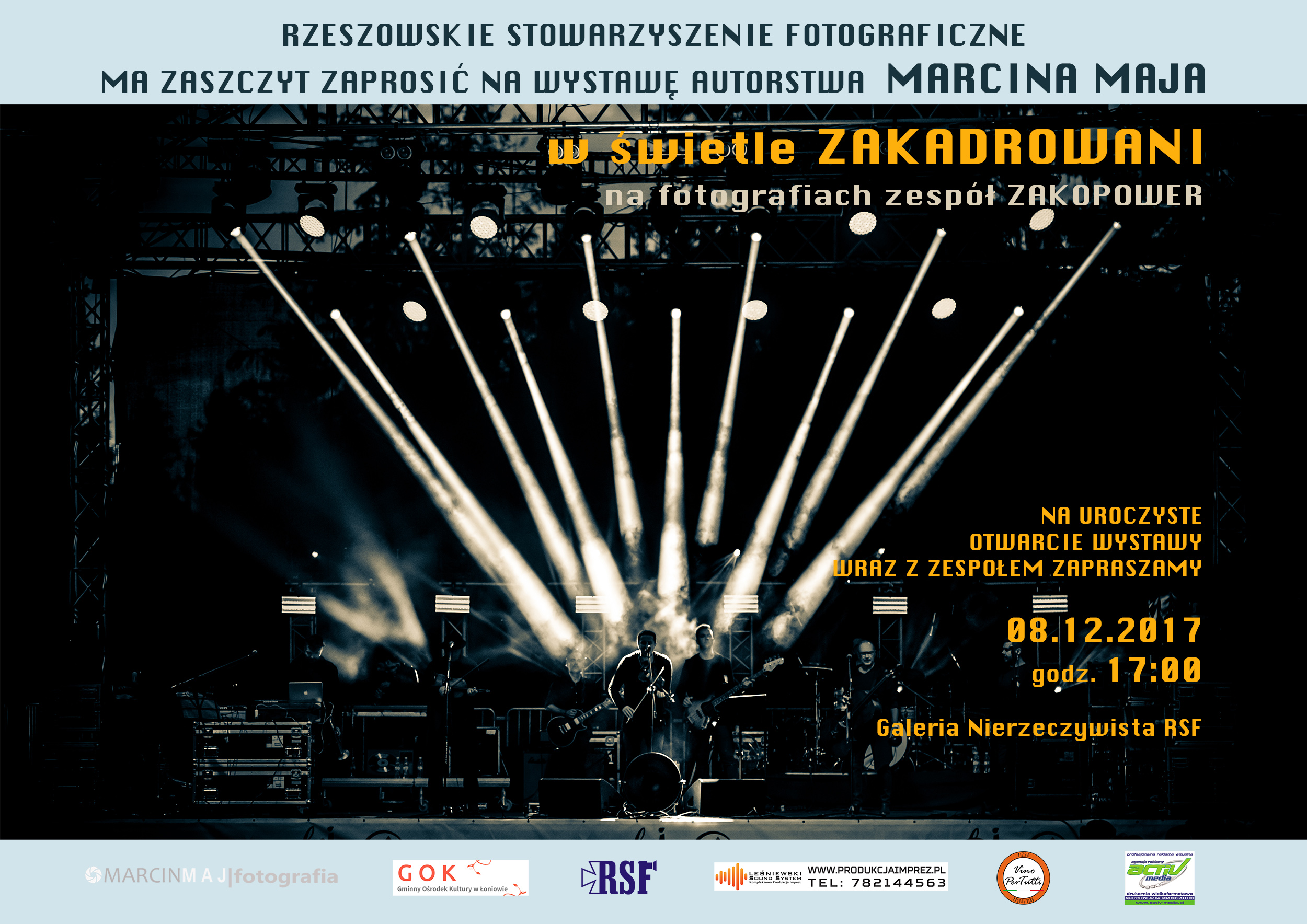 Członkowie zespołu Zakopower będą gośćmi najbliższego wernisażu w Galerii Nierzeczywistej RSF w Rzeszowie. Muzykom poświęcona jest wystawa fotografii Marcina Maja, która zostanie otwarta w piątek, 8 grudnia. Tytuł „W świetle ZAKADROWANI"!