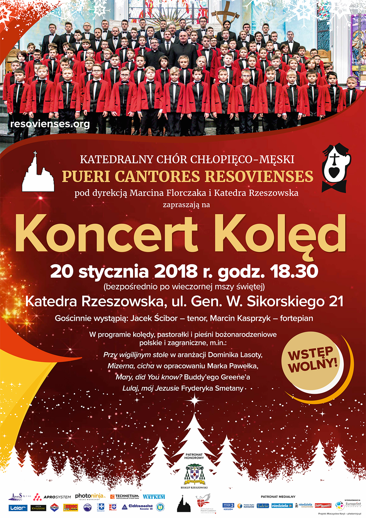W sobotnim „Koncercie Kolęd” zaprezentowane zostaną m.in. „Przy wigilijnym stole” w aranżacji Dominika Lasoty, „Mizerna, cicha” w opracowaniu Marka Pawełka, „Mary, did You know?” Buddy’ego Greene’a, „Lulaj, mój Jezusie” Fryderyka Smetany. Publiczność może spodziewać się wspaniałego koncertu. Gościnnie wystąpią: tenor Jacek Ścibor i Marcin Kasprzyk na fortepianie. Głównymi wykonawcami będą natomiast śpiewacy z cenionego, rzeszowskiego chóru „Pueri Cantores Resovienses”.