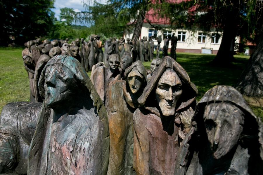 Z tej historii powstał „Exodus”, ponad sto wyrzeźbionych postaci mężczyzn, kobiet i dzieci w marszu, niektórzy z tobołkami, wszyscy z udręczonymi twarzami, tym prawdziwszymi, że ogorzałymi od słońca, deszczu i wiatru. Z każdym rokiem tych postaci w sposób naturalny ubywa, ale „Exodus” niezmiennie robi ogromne wrażenie. Stał się uniwersalnym symbolem wszystkich wypędzonych. Symbolem, który co roku przyjeżdżają oglądać coraz to nowi turyści, niekoniecznie zorientowani, że słynne rzeźby stoją na podwórku przedwojennej szkoły, a od siedmiu lat siedziby Uniwersytetu Ludowego.