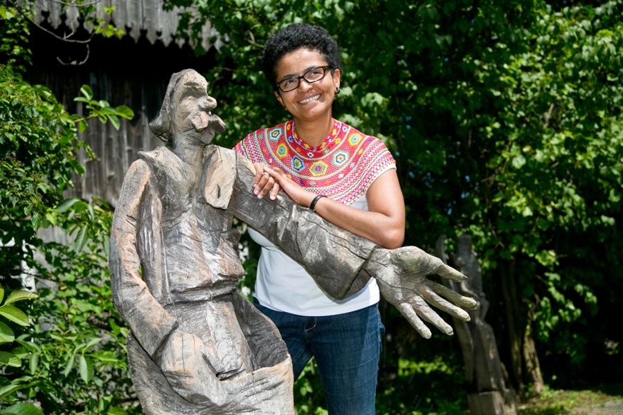 Swoje miejsce na ziemi od siedmiu lat znalazła tu też Monika. Żywa reklama Uniwersytetu Ludowego w Woli Sękowej. Od 8 lat jego dyrektorka, która szczęśliwie przeniosła go ze Wzdowa w Beskid Niski. -  I decyzji nie żałuję, choć jeszcze nie tak dawno świata nie widziałam poza siedzibą Ostaszewskich – śmieje się Monika Wolańska. Absolwentka Uniwersytetu Ludowego we Wzdowie oraz edukacji artystycznej w zakresie sztuk plastycznych na Uniwersytecie Rzeszowskim. Moniki trudno nie zauważyć, po pierwsze charakterystyczne afro na głowie, do tego przepiękny uśmiech, jaki mają tylko ciemnoskóre dziewczyny, no i ten strój karpacki, gdy śpiewa i gra na instrumentach perkusyjnych w zespole „Widymo”. Afrokarpatka, po prostu. A tak naprawdę Monika jest rodowitą rzeszowianką, której tato przed laty przyjechał z Togo studiować na Politechnice Rzeszowskiej i tutaj związał się z Polką. Z czasem tato Moniki wrócił do Afryki, a ona od zawsze mieszkała z mamą w Rzeszowie.