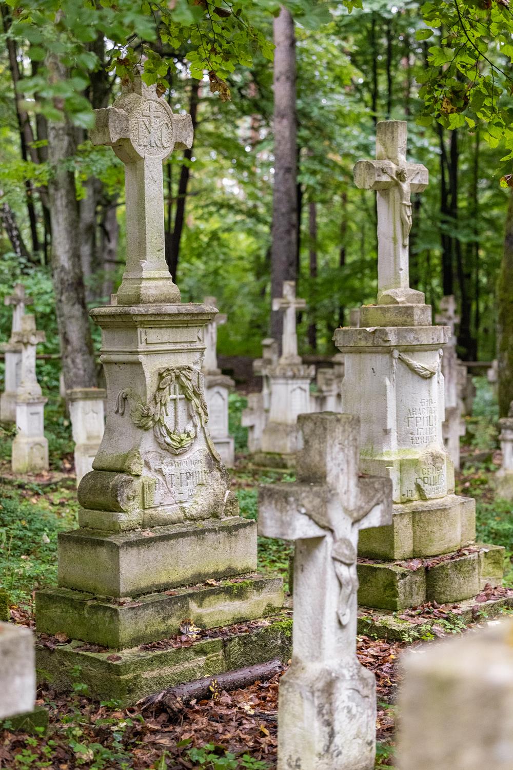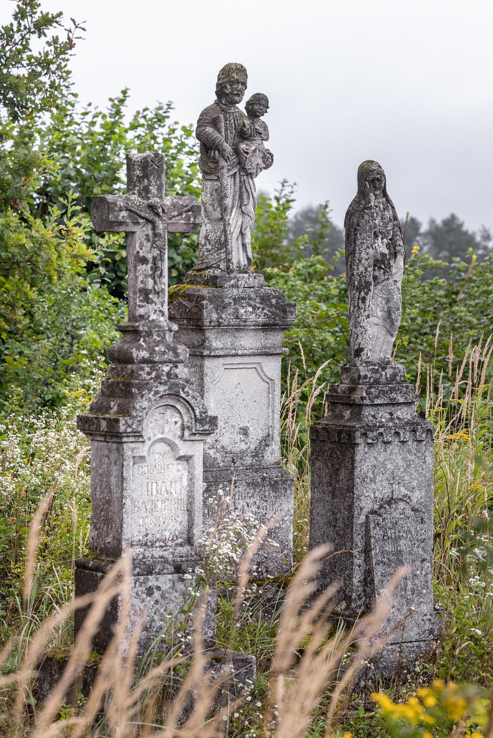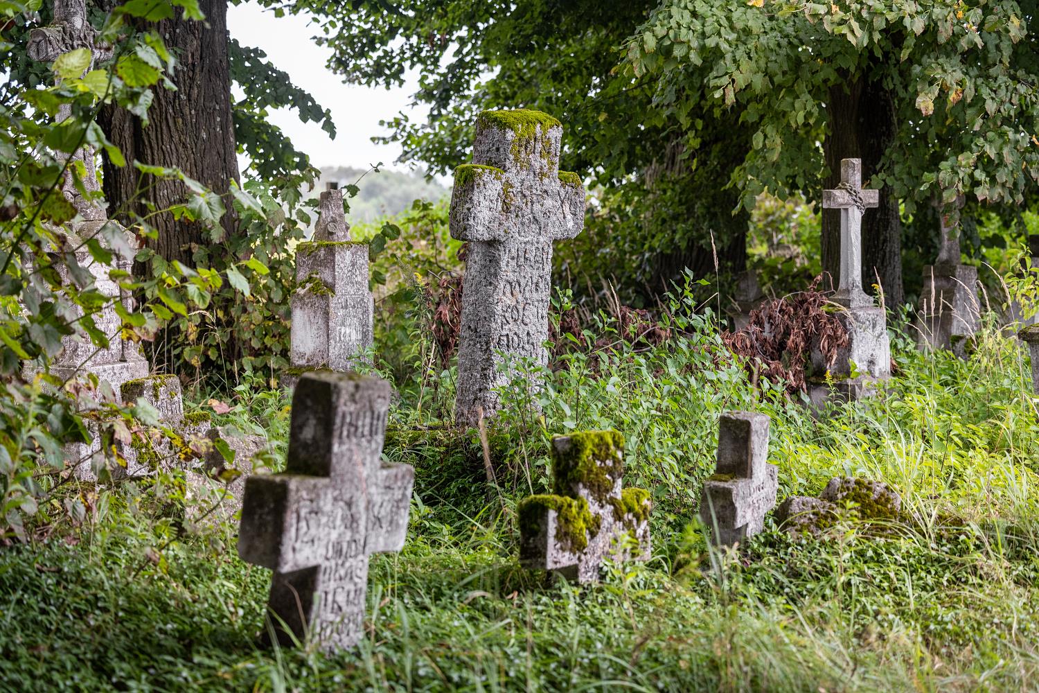 Okoliczne cmentarze Józef Lewkowicz przyrównuje do ogromnego galerii sztuki osadzonej w naturalnym pejzażu. Kamienne nagrobki wciąż zaskakują go czymś nowym i nieoczekiwanym: zadziwia ich finezyjna forma i skomplikowane treści symboliczne rzeźby. Najbliższy cmentarz w Nowym Siole gromadzi pełnoplastyczne figury: to postać zadumanej  Matki Bożej Bolesnej czy św. Józefa z Dzieciątkiem. Niektóre krzyże przewiązane są stułą, a na postumencie widnieje kielich. To groby księży. Jeden z odnowionych aniołków świeżo pomalowany farbą chlorokauczukową skazany jest na zniszczenie. Kamień – tak jak człowiek – musi oddychać. Nowoczesna chemia pokrywa go nieprzepuszczalną skorupą, która powoduje pod warstwą farby powolny rozkład rzeźby.