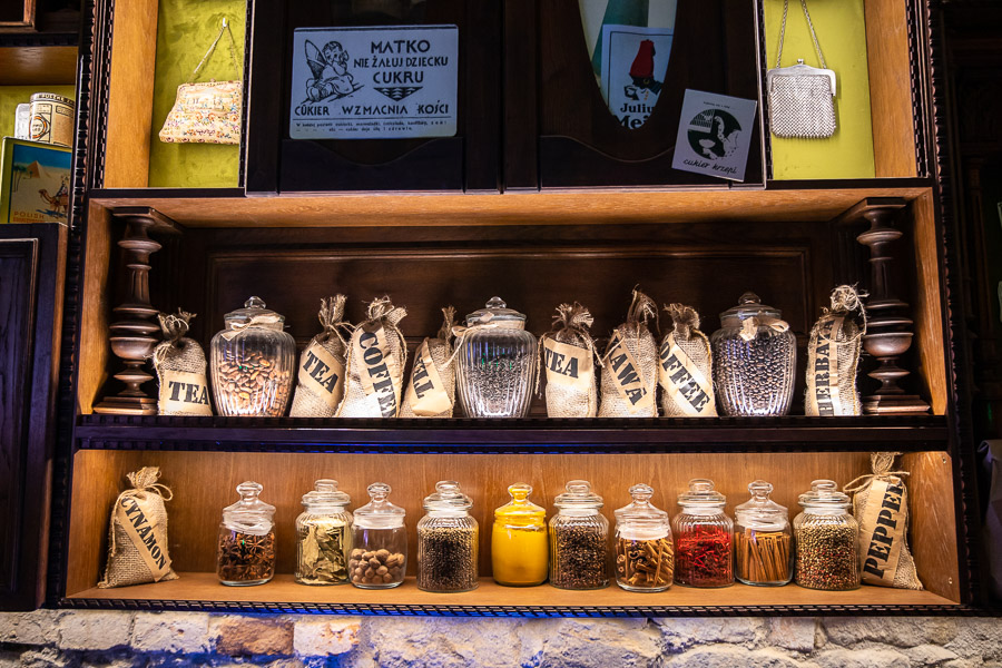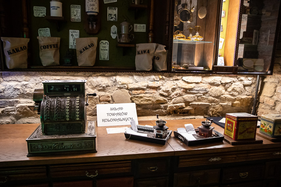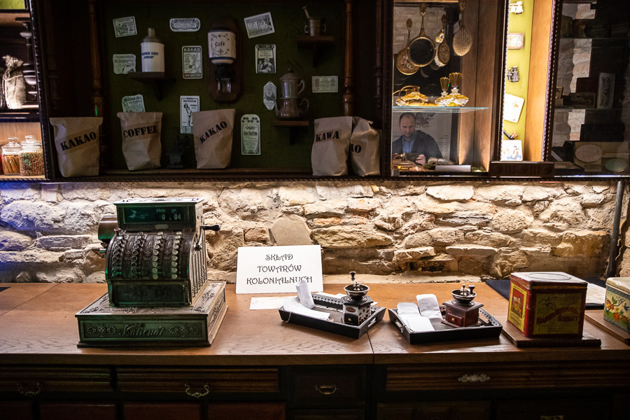 Najciekawsze dla mnie fragmenty ekspozycji to sala trzech religii, którą wyznawali mieszkańcy miasta oraz odtworzenie sklepów: bławatnego oraz znanej firmy kupieckiej Ignacego Schaittra i Spółki. Ten ostatni pracowicie zrekonstruowano zapewne nie wiedząc, iż znaczną część wyposażenia sklepu ocalił pan Jerzy Gottman, syn ostatniego właściciela. W domu przy ul. Grunwaldzkiej (gdzie niegdyś na parterze mieścił ostatni lokal sklepowy firmy Schaitter&Spółka) przechowuje on wiele fragmentów wystroju i wyposażenia sklepu: począwszy od drzwi wejściowych i witraża z wizerunkiem Matki Boskiej poprzez dwie ozdobione secesyjnym ornamentem kasy sklepowe amerykańskiej firmy „National”. Są tam także dwa miedziane zbiorniki z kranikami służące do przechowywania nafty. Obok rynienka do suszenia kawy i piecyk do jej palenia oraz młynek do mielenia ziaren. Jest waga apteczna, a także radioodbiornik „Philips” - najnowszy przedwojenny model, ukrywany w sklepie przez całą okupację.