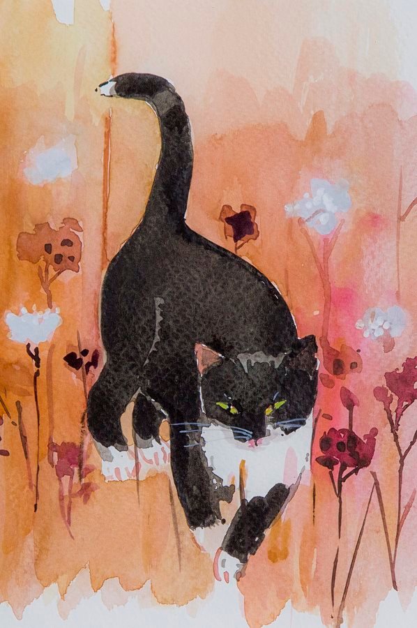 - Musi mnie coś zainspirować, aby powstała nowa praca – mówi Barbara Smoczeńska. Później te notatki przybierają kształt rysunku, gwaszu lub akwareli, które układają się w cykle np. „Kocie żarty”, „Dolce farniente” (słodkie nieróbstwo), „Koty ślubne” i wiele innych.