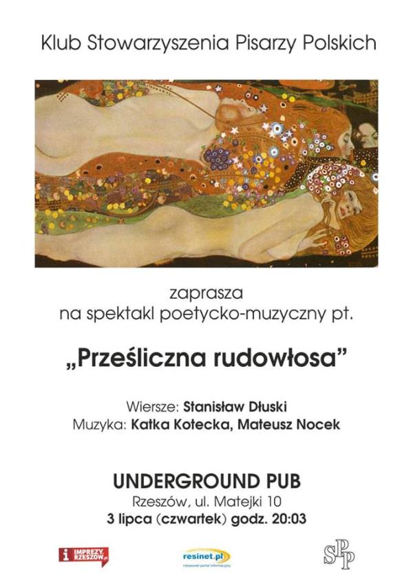 To będzie fuzja poezji Stanisława Dłuskiego i muzyki w spektaklu pt. „Prześliczna Rudowłosa” w rzeszowskim Pubie Underground. Spotkanie z poezją rzeszowskiego twórcy odbędzie się w czwartek, 3 lipca o godz. 20.03. Wiersze rzeszowskiego poety Stanisława Dłuskiego przeczyta Andrzej Piecuch z Teatru Maska, a oprawę muzyczną przygotują Katka Kotecka i Mateusz Nocek.