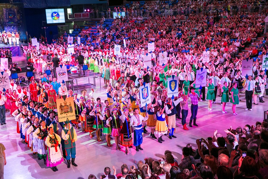 Dwa koncerty, które tradycyjnie odbywają się pod koniec festiwalu, są największymi wydarzeniami i widowiskami tanecznymi odbywającej się co trzy lata spotkań Polonii. W trakcie poniedziałkowego występu zespoły pokazały folklor krajów, z  których przyjechali. W tym roku zmieniono zasady doboru repertuaru oraz nazwę, dotychczasowe „Tańce i pieśni krajów zamieszkania” zastąpiono „Folklorem narodów świata”. To znacznie poszerzyło wybór polonijnym zespołom i dzięki temu w programie znalazł się folklor bułgarski, rumuński, cygański, turecki. Takie urozmaicenie wprowadziły głównie grupy kanadyjskie, ponieważ Kanada nie ma własnego folkloru, poza tradycją indiańską, więc zespoły wybierały folklor narodów żyjących w miejscach skąd pochodzą. Poza tym było wiele tańców i pieśni z elementami etnicznymi, a także amerykańskie swing, lindy hop, western polka, country dance, oraz folklor rosyjski, ukraiński, czeski, szwajcarski.