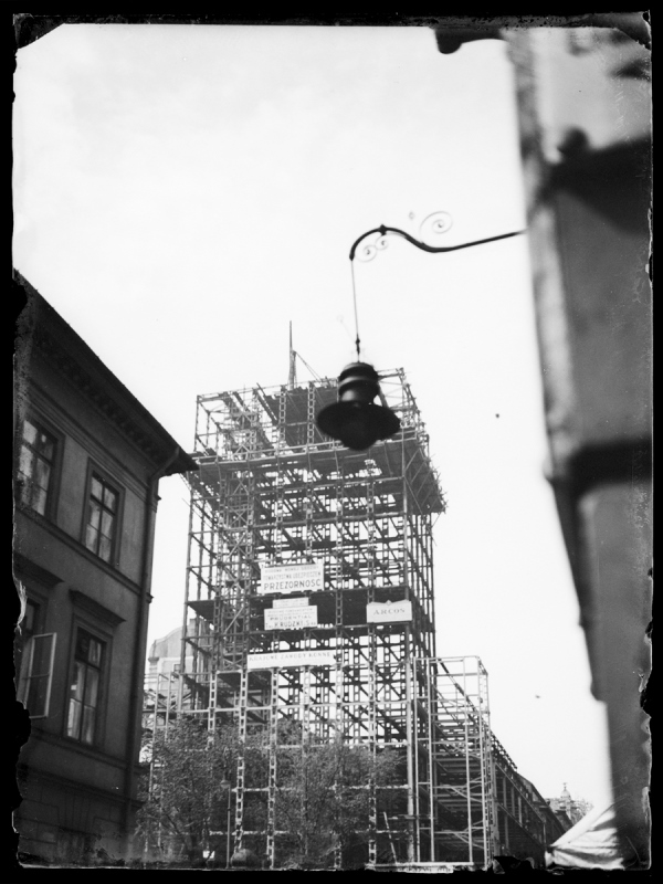 Dużo rzadsze są zdjęcia wykonane w trakcie budowy. Na fot. 70 oglądamy wznoszenie stalowej konstrukcji, której autorem był Piotr Bryła. Niewiele zachowało się fotografii z tego okresu, czyli z lat 1931-32.