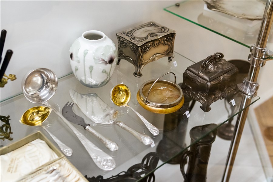 Wśród artefaktów falistą linią zwracają uwagę patery, kandelabry, dzbanki - wykonane ze srebra czy cyny, która wtedy zrobiła karierę. Także ceramiczne talerze zdobione na wzór obrazów Alfonsa Muchy. Obok nich wyeksponowano secesyjne kapy, a także sztambuchy w niepowtarzalnych oprawach i pełne zdjęć, które przypominają, że na przełomie wieków fotografia święciła wielki tryumf.