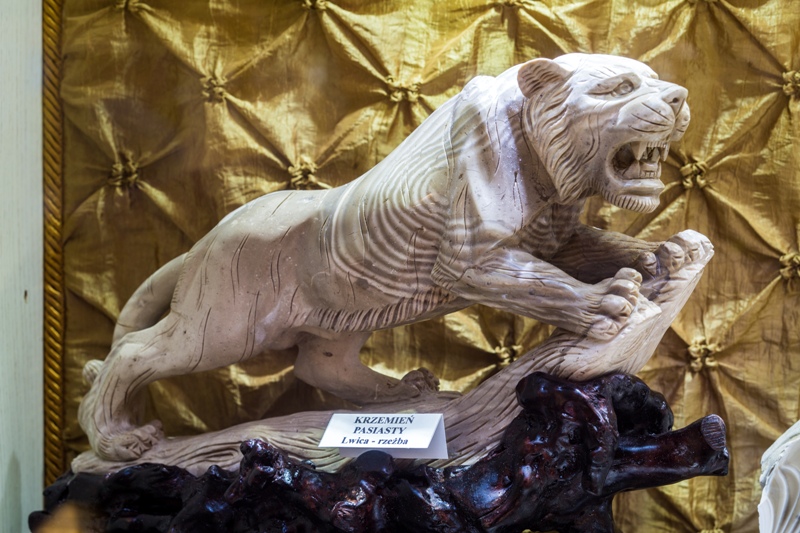 Muzeum urządził w salonie jubilerskim, który prowadzi. Gabloty z eksponatami zajmują prawie cały salon. Piękny, ale nieduży, trzy pomieszczenia. Zaaranżowane tak, żeby, jak mówi właściciel muzeum, wystawiane skarby natury miały godną oprawę. Mają. To jest salon. Od sufitu, po meble. Gabloty specjalnie zaprojektowane, stosownie do wnętrza. Oprócz prezentowanych minerałów, sporo bibelotów, stara biżuteria – wszystko razem „robi klimat”.