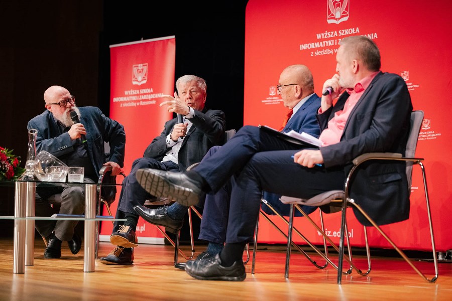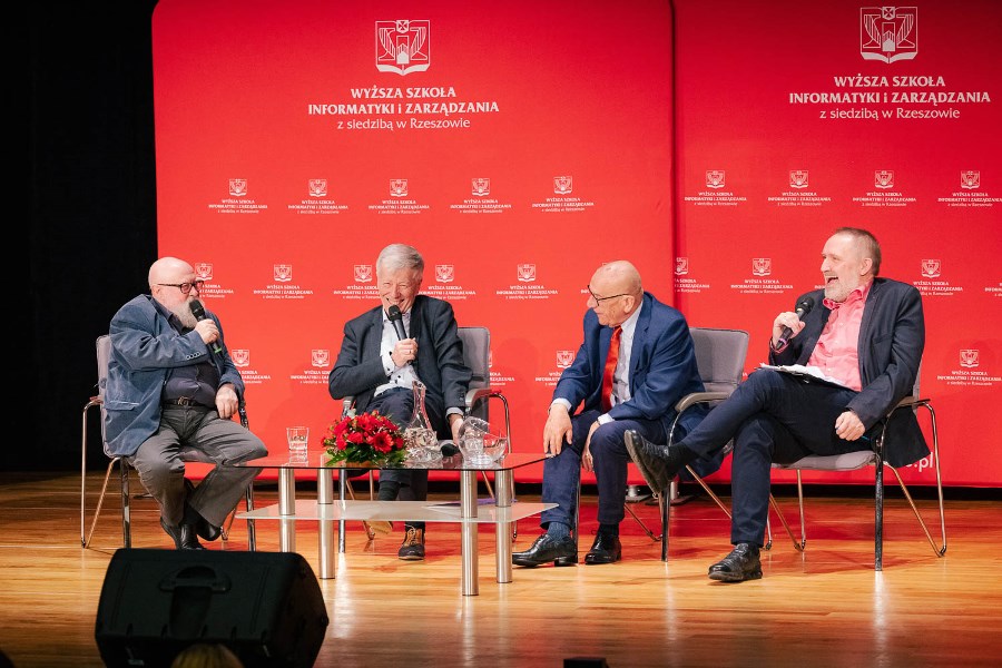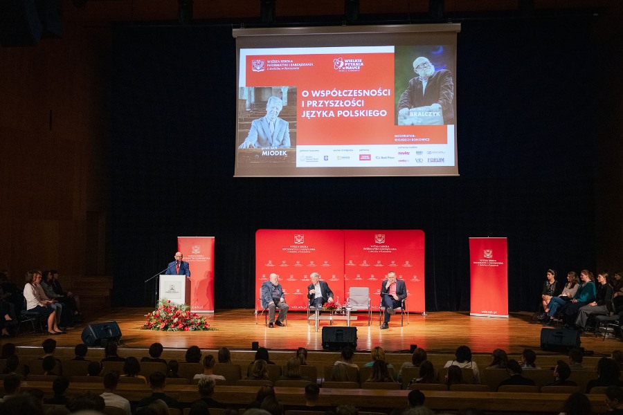 „Super”, „ekstra”, „mega”, a może po prostu „Essa” – ulubione słowa młodego pokolenia Polaków i nie ma co się zżymać, że język polski ubożeje. Wręcz przeciwnie, język z każdym rokiem jest bogatszy – o słowa z przeszłości i przyszłości, ale mowa, owszem, staje się uboższa. „O współczesności i przyszłości języka polskiego” dyskutowali w Filharmonii Podkarpackiej prof. Jerzy Bralczyk i prof. Jan Miodek w ramach spotkań „Wielkie pytania w Nauce” organizowanych przez Wyższą Szkołę Informatyki i Zarządzania w Rzeszowie. Debatę prowadził znakomity publicysta „Tygodnika Powszechnego” red. Wojciech Bonowicz.