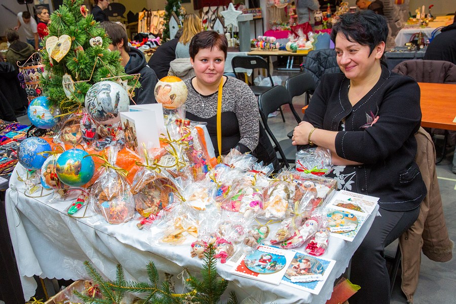 Na kiermaszu można kupić produkty hand-made nie tylko związane z świętami Bożego Narodzenia. Wśród wystawców swoje stoisko prezentują Bożena Pelczar i Edyta Kustroń z okolic Krosna, dwie koleżanki, które wspólnie zajmują się projektowaniem i szyciem odzieży z wełny filcowanej na mokro. Kupić u nich można oryginalne płaszcze, torebki, kapelusze, a także przepiękne kolorowe szale. - Zaletą takich ubrań i dodatków jest ich oryginalność i niepowtarzalność. Wszystkie są robione ręczne, co jest bardzo pracochłonne - mówi Edyta Kustroń. Właścicielki stoiska przyznają, że ich produkty cieszą się dużym zainteresowaniem i znajdują na nie nabywców, mimo że ceny wcale nie należą do niskich.