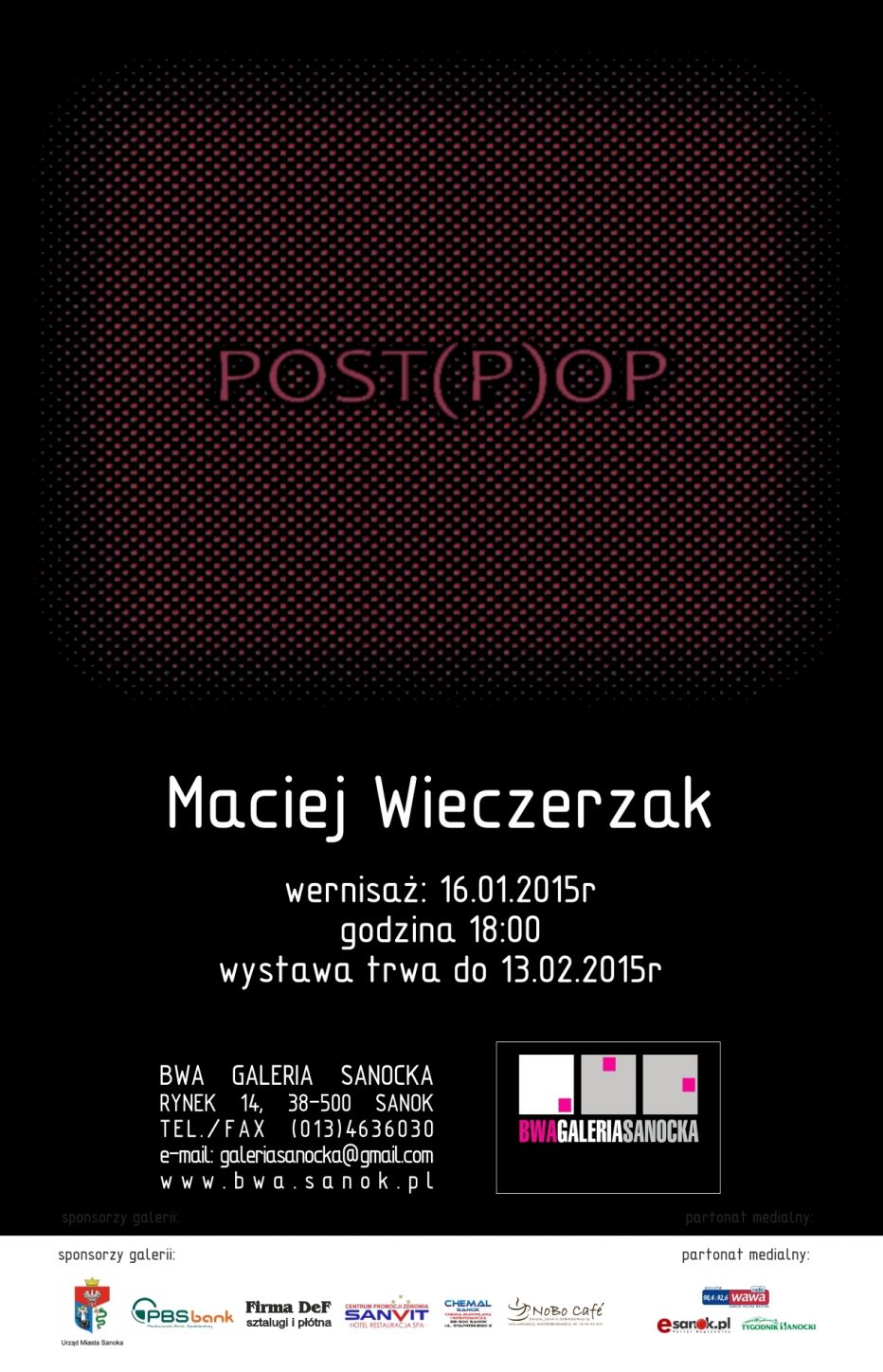 W serii POST(P)OP sięgnął po typowy dla siebie repertuar tematyczny - w oparciu o motywy popkulturowe buduje opowieści o dwóch podstawowych biegunach ludzkiej egzystencji: seksualności i śmierci. Artysta za skuteczniejszy niż powaga sposób trafienia do widza uznaje ironię i humor, dlatego z uciechą i rozmysłem wikła odbiorcę w przewrotną grę, zarówno na polu znaczeń, jak i przede wszystkim w sferze samej wizualności. Cechą wspólną obrazów z cyklu POST(P)OP jest wykorzystywanie możliwości generowania optycznych złudzeń. Wybierając tematy prac, Wieczerzak ponownie zwraca się w stronę historii sztuki. W jego obrazach natrafiamy na cytaty z Rembrandta i Hansa Holbeina, a także parafrazę Jacksona Pollocka.