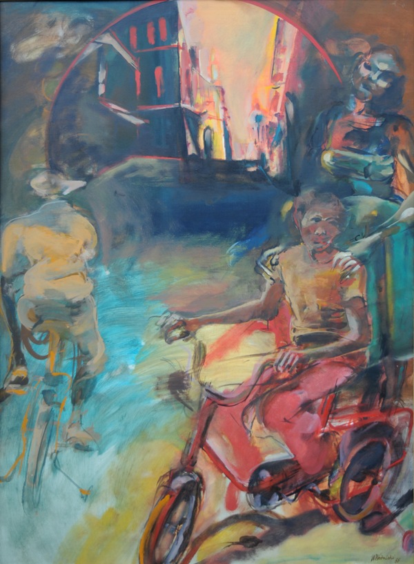 Z cyklu Nieskończona opowieść o człowieku D, 1986 - tempera, olej płótno (150x111 cm). Autor Wiesław Wodnicki