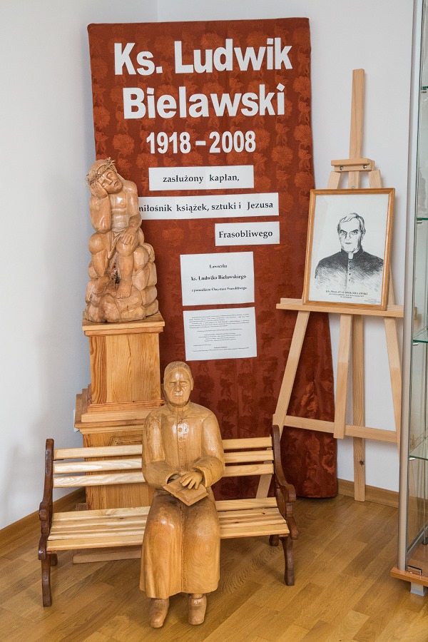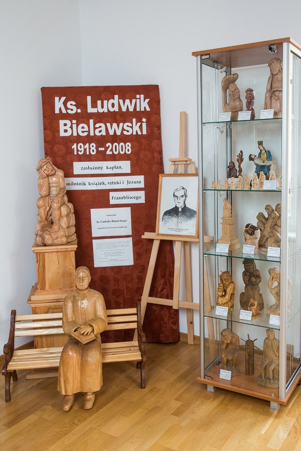 Ks. Ludwik Bielawski (1918-2008) pochodził z Brzozowa, zaś ostatnie pół wieku swego pracowitego życia spędził w Jeżowem jako proboszcz i dziekan, a od 1994 - jako rezydent. W roku przejścia na emeryturę otrzymał tytuł prałata honorowego Jego Świątobliwości Jana Pawła II. Pasja księdza zaczęła się od zakupu w 1948 r. figurki Frasobliwego od ludowej rzeźbiarki Katarzyny Rzepki z Albigowej. Zainspirowała go lektura "Na skalnym Podhalu" Kazimierza Przerwy-Tetmajera. Były tam urzekające opisy codziennego obcowania górali ze świętymi z obrazów i przydrożnych kapliczek. Na wiele lat kolekcjonerstwo uległo zawieszeniu z powodu nadmiaru codziennych obowiązków. Właśnie w Jeżowem ks. Bielawski powrócił do zbierania dzieł sztuki ludowej. Znajomi księża przywozili mu rzeźby Frasobliwego - najczęściej wykonane przez twórców z ich parafii. Kolekcja rozrastała się, przekształcając z biegiem lat w regionalne muzeum. "Tu pracował wielki człowiek" - powiedział ks. Julian Pudło z Brzozowa w homilii wygłoszonej na pogrzebie kapłana.