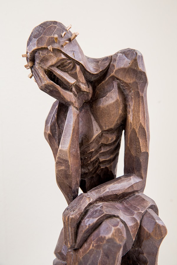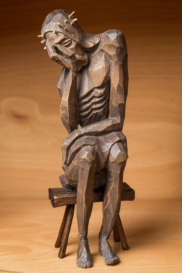 W latach 1509-11 Albrecht Dürer wykonał kartę tytułową do swego drzeworytniczego cyklu "Małej Pasji". Przedstawia ona postać Chrystusa siedzącego na grubo ciosanym kamieniu. Ubrany tylko w perisonium (przepaskę na biodrach), w koronie cierniowej na głowie otoczonej nimbem w kształcie krzyża. Postać Zbawiciela  opartego na prawej ręce pochylona jest do przodu w głębokiej zadumie. To moment oczekiwania na Ukrzyżowanie. Scena, która nie ma swego źródła ani w Ewangeliach kanonicznych ani apokryficznych, stała się dzięki ówczesnemu upowszechnieniu grafiki niezwykle popularna w sztuce Europy środkowej i wschodniej. Ma ona swój świecki odpowiednik w terrakotowym posążku padewskiego  rzeźbiarza Andrea Briosco zwanego Riccio, którą Dürer miał oglądać w czasie swej włoskiej podróży. Przedstawia ona utrudzonego robotnika w momencie odpoczynku. Jego znużenie ma charakter bardziej duchowy niż fizyczny.
