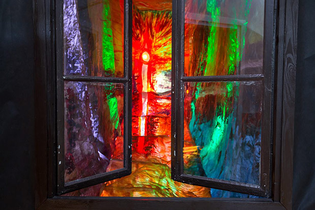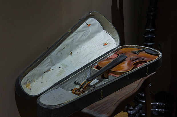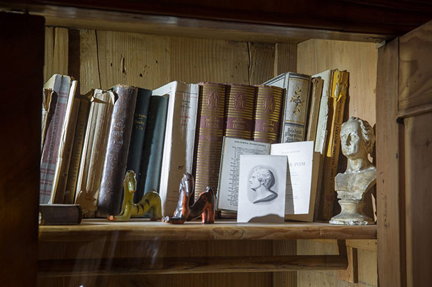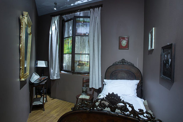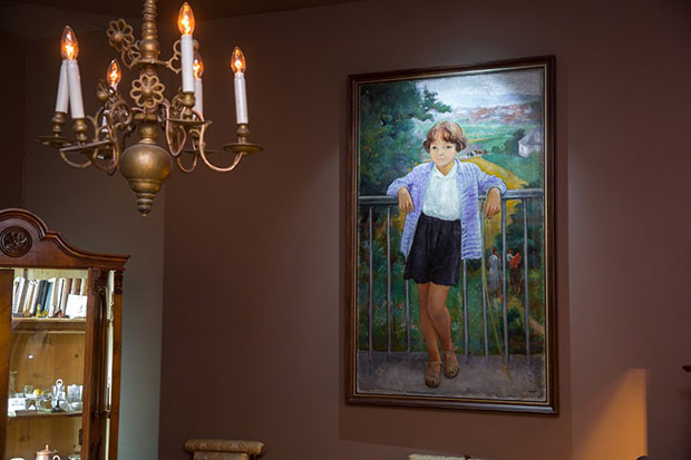 Wchodzimy do salonu, gdzie ustawiono meble przeniesione z domu Weissów w Kalwarii Zebrzydowskiej. To nie tylko rekonstrukcja wnętrza, w którym królują dwa płótna: „Sad w Kalwarii” oraz „Portret syna” (wypożyczone od rodziny). To także własna kreacja Jarosława Figury: nad pianinem unoszą się w górę nuty tak, jakby dźwięki muzyki. W serwantce ustawiono fajansowe wazony i dzbanki, które pojawiają się na obrazach artysty. Poprzez lekko uchylone drzwi oglądamy „szafę snów”, w której wnętrzu śledzimy wzlatujące w górę bibeloty. Za oknem snop zboża jakby z „Wesela” Wyspiańskiego. Wstrzymam się od dalszego opisu. Obejrzyjcie sami. Tego nie zobaczycie w przeciętnym martwym muzeum zapełnionym planszami i gablotkami.