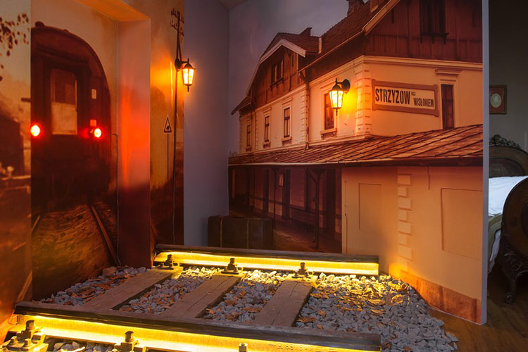 Wystawę otwiera reprodukcja obrazu „Promienny zachód słońca” - wizja strzyżowskiego pejzażu przed zmrokiem. Pobyt Weissa zaczyna się od budynku dworca kolejowego, gdzie na poddaszu mieściło się mieszkanie Florków. Wyposażenie pokoiku artysty jest autentyczne: to jego łóżko z pościelą przykrytą kocem. Na krześle obok „Wybór poezyj” Adama Asnyka, Kraków 1926 otwarty na wierszu „Mgławice”. W lustrze, w którym przeglądał się wielokrotnie, utrwalony został ledwie zarysowany wizerunek malarza.
