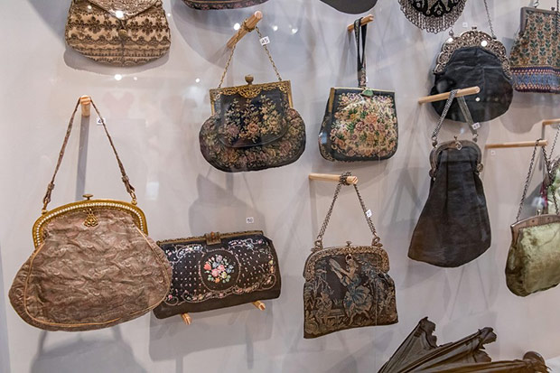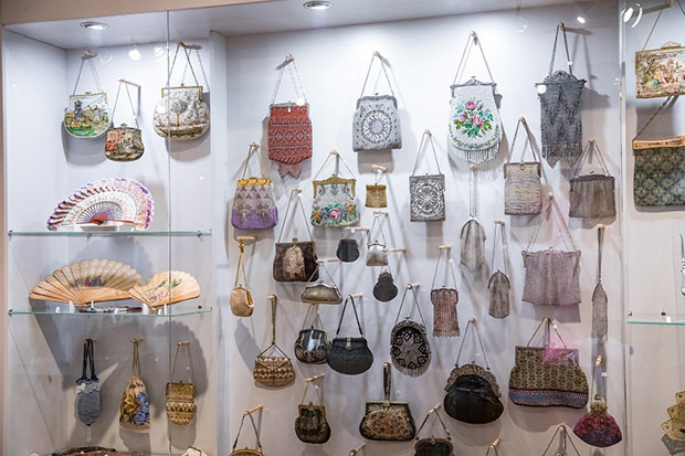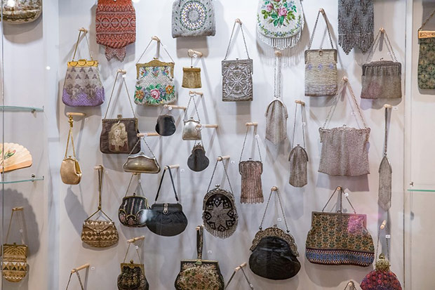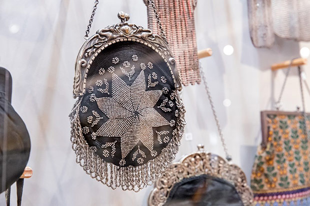 Wszechobecne na wystawie torebki to: biedermeierowskie woreczki haftowane koralikami, późniejsze pokrywane ściegiem petit point, tkane żakardowo, ujęte w metalowe ramki z łańcuszkami, zdobione ornamentami geometrycznymi, kwiatowymi w stylu secesji czy art deco. Motywami miniaturowych haftów są: portrecik, pejzaże, sielankowe sceny fete galante. Klasę jubilerskich wyrobów prezentują metalowe torebki ze srebra i alpaki wykonane z ogniwek połączonych pancerzowym splotem lub ze srebrnych płytek. Ciekawość budzą nietypowe kształty jak sakiewka w formie długiej pończochy, czy zameczek zwieńczony miniaturową figurką pieska. Jest też uszyta z rypsu i koronki torebka na okazję pierwszej komunii.