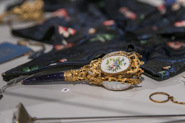 Ekspozycja uwzględnia akcesoria dzisiaj już zupełnie zapomniane, jako że dawno temu wyszły z użycia. Są nimi niezbędne dodatki do balowej toalety młodej damy wchodzącej do towarzystwa. Karnecik z rysikiem do notowania zamówionych tańców przybierał rozmaite formy od oprawionej w macicę perłową czy kość słoniową książeczki po kształt miniaturowego wachlarza. Panna wybierająca się na bal nosiła na palcu obrączkę z przymocowanym stożkowatym uchwytem na bukiecik. Ten przedmiot również bywał jubilerskim majstersztykiem z metalu, srebra, emalii, masy perłowej.