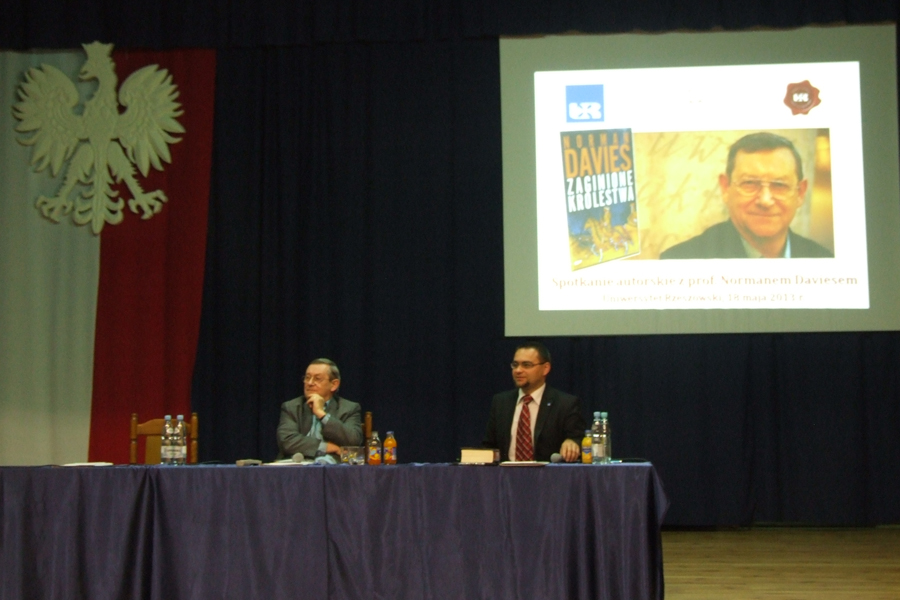 O państwach, których już nie ma, trudnych relacjach Polski z sąsiadami oraz przyszłości wielobiegunowego świata - opowiadał znany brytyjski historyk Norman Davies podczas spotkania, które 18 maja br. odbyło się na Uniwersytecie Rzeszowskim. Duża Aula uniwersytetu nie była w stanie pomieścić wszystkich zainteresowanych wykładem profesora. Sam rektor Uniwersytetu Aleksander Bobko, przyznał podczas powitania, iż kiedy usłyszał, że spotkanie ma odbyć się w sobotnie południe, starał się przekonać organizatorów do zmiany terminu. Motywem przewodnim wydarzenia były losy Galicji, której poświęcona jest część ostatniej książki Brytyjczyka „Zaginione Królestwa”.