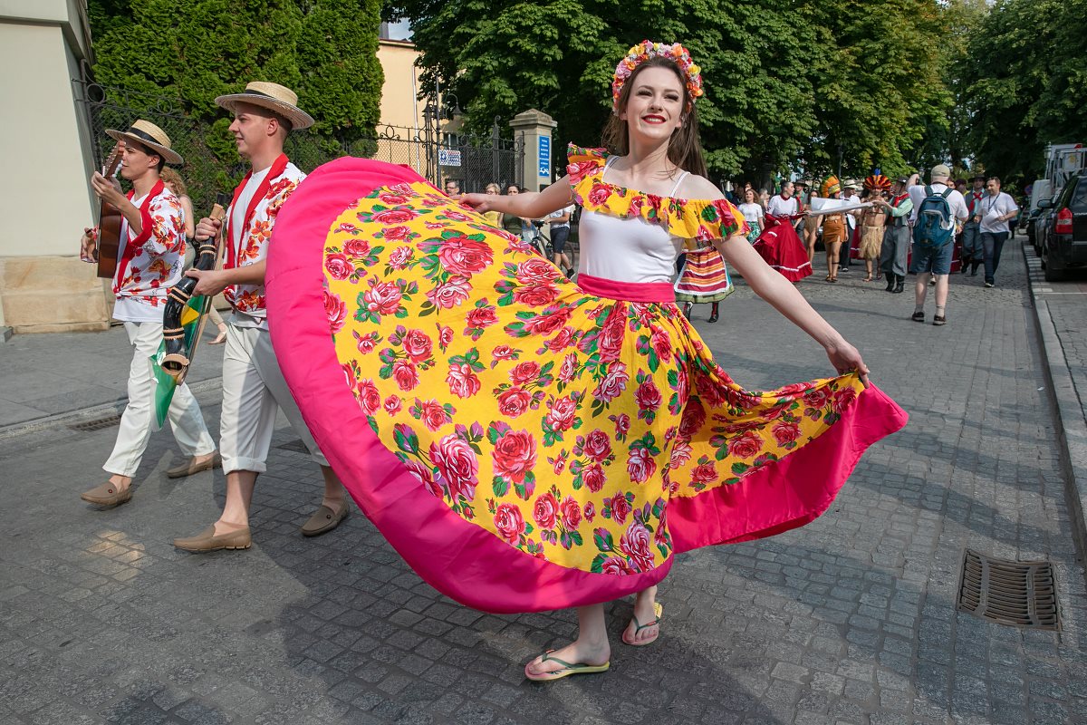 Kacper, jego przyjaciele z zespołu ?Wici", jak i wszyscy goście festiwalu, w powitalnym korowodzie, który w piątek, 19 lipca rozpoczął XVIII Światowy Festiwal Polonijnych Zespołów Folklorystycznych, przeszli z od al. Lubomirskich, przez ul. 3 Maja i Kościuszki, na rzeszowski Rynek. Rzeszowianie bili im brawa na całej trasie marszu, a na scenie Rynku witali przedstawiciele miasta i województwa. Marszałek podkarpacki Władysław Ortyl odczytał list od prezydenta Polski Andrzeja Dudy, który swoim patronatem honorowym objął XVIII edycję festiwalu. Nie zabrakło także listu od Marka Kuchcińskiego, marszałka Sejmu oraz słów powitań od bpa rzeszowskiego Jana Wątroby. Prezydent Tadeusz Ferenc nie tylko żartował, że nie wypuści Polonusów z miasta, ale również wręczył upominki parze młodych z Australii, która pobrała się przy okazji festiwalu.