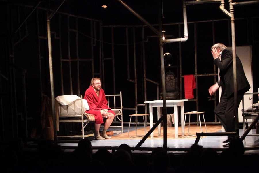 Zapewne nigdzie indziej, poza tą małą, pozbawioną okien sutereną, nie spędzaliby choćby godziny w swoim towarzystwie. Ale mimo różnic żyją w symbiozie. Są od siebie zależni. XX opija współlokatora z herbaty, objada z konserw i nie płaci swojej części czynszu. AA traktuje towarzysza jak obiekt swoich badań i poszukiwań niewolnika idealnego. Znaczący jest też czas, gdy poznajemy bohaterów – sylwestrowa noc, która jest symbolem okresu przejściowego, odejściem starego i przyjściem nowego. I pomimo kilku akcentów komicznych, nie da się zapomnieć, że postaci Mrożka są tragiczne, bo w gruncie rzeczy „Emigranci” to sztuka o wolności, która - bez względy na formy, w jakich się objawia - zawsze wymaga od człowieka ceny najwyższej. Mrożek pisząc tę sztukę w 1974 roku postawił pytania, które niezmiennie są aktualne: o granice wolności, o to czy istnieje w ogóle szansa, by jednostka wyzwoliła się z więzów społecznych i narodowych. Dlatego też po spektaklu długo jeszcze towarzyszy plątanina sprzecznych uczuć, że to i śmieszne, i straszne.