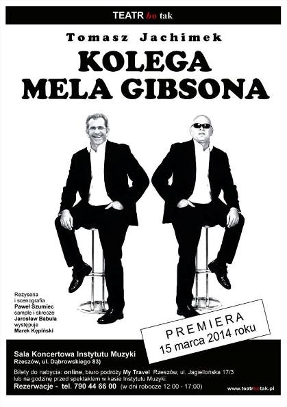 Nowa sztuka Teatru Bo Tak w pełni ukazuje geniusz aktorski Feliksa Rzepki. Przez 26 lat mistrzowsko kreował postać Cyrano de Bergeraca, zachwycał autorską rolą Dystrybutora Paliw Płynnych i… jest kolegą samego Mela Gibsona. Aby zobaczyć tę wyjątkową postać na własne oczy trzeba koniecznie wybrać się na premierę spektaklu „Kolega Mela Gibsona” 15 marca br. do Teatru Bo Tak w Instytucie Muzyki Uniwersytetu Rzeszowskiego.