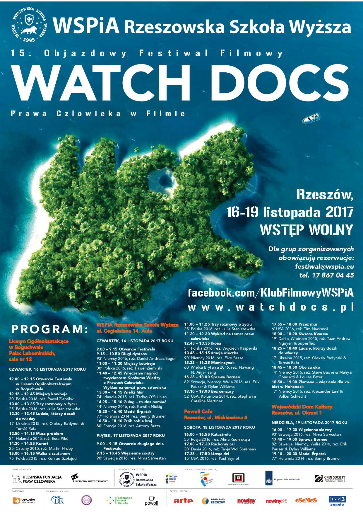 Ogólnopolski Objazdowy Festiwal Filmowy „Watch Docs. Prawa Człowieka w Filmie” organizowany jest od 2003 roku przez Helsińską Fundację Praw Człowieka we współpracy ze Społecznym Instytutem Filmowym. W tym roku Festiwal w Polsce już po raz piętnasty organizowany jest we współpracy z organizacjami pozarządowymi i ośrodkami akademickimi.