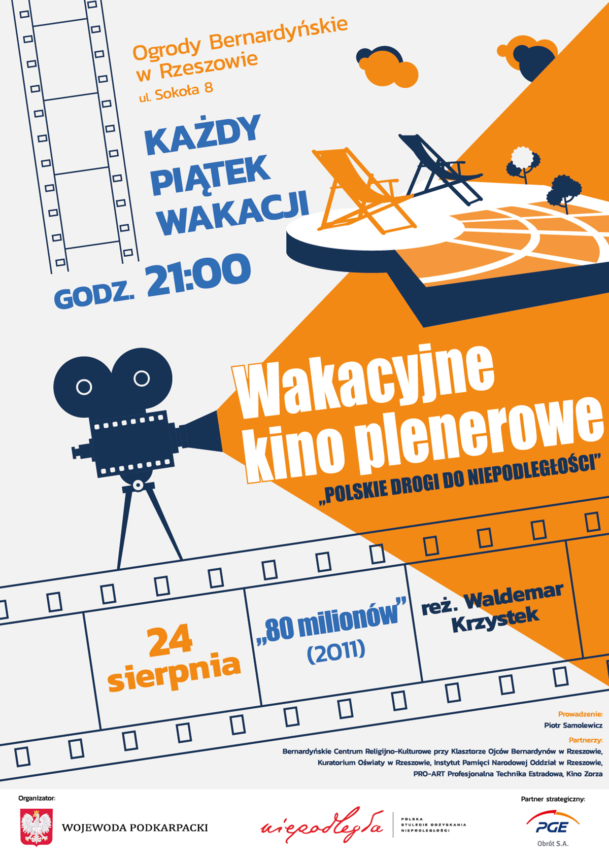 Projekt pn. „Polskie drogi do niepodległości”, którego realizatorem jest wojewoda podkarpacki, ruszył 29 czerwca. Wakacyjne kino plenerowe to 10 cotygodniowych spotkań w piątki, w Ogrodach Bernardyńskich w Rzeszowie, gdzie na leżakach - w wakacyjnej atmosferze – można oglądać interesujące filmy obrazujące powikłaną polską historię.