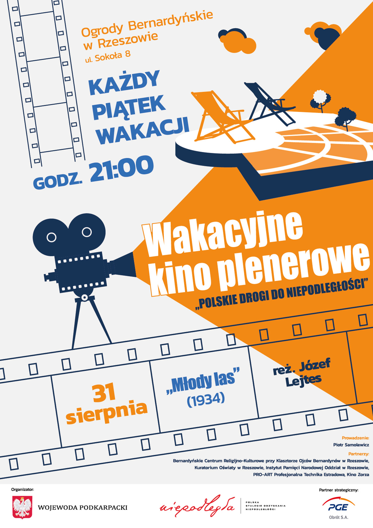 Projekt pn. „Polskie drogi do niepodległości”, którego realizatorem jest wojewoda podkarpacki, ruszył 29 czerwca. Wakacyjne kino plenerowe to 10 cotygodniowych spotkań w piątki, w Ogrodach Bernardyńskich w Rzeszowie, gdzie na leżakach - w wakacyjnej atmosferze – można oglądać interesujące filmy na temat polskich dróg do niepodległości.