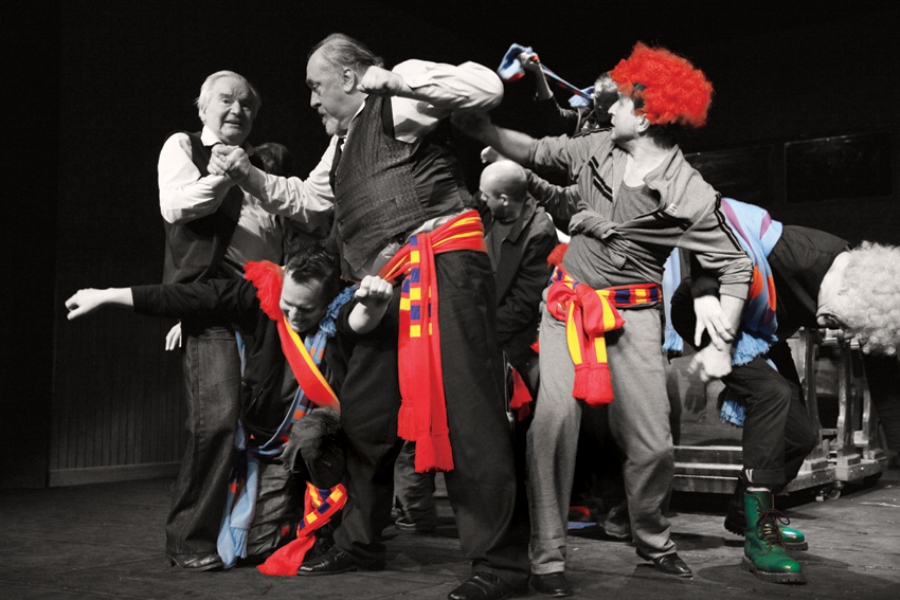 Ale! Inscenizacja „Zemsty” w wykonaniu rzeszowskich aktorów może być sporym artystycznym zaskoczeniem. Na scenie pojawiają się sami mężczyźni, zaś członkowie zwaśnionych rodów to kibice futbolowi, których rozróżniamy po kolorach klubowych szalików. Te zastępują też wiele ważnych rekwizytów, służą jako lina do krępowania, żupan czy pas szlachecki.