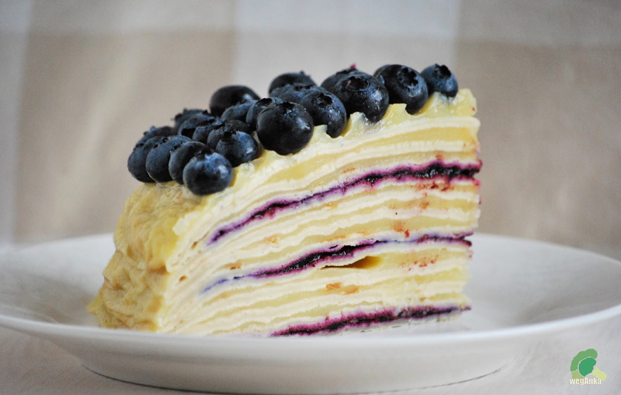Tort naleśnikowy z budyniem i borówkami (weg-anka.blogspot.com)