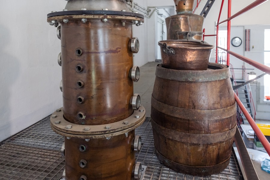 - Zależało nam na przywróceniu cyklu produkcji w tej samej technologii co przed wojną – od przyjęcia surowca, słodowania, przez zacieranie, fermentację, destylację, zestawianie i butelkowanie finalnego wyrobu – mówi Grzegorz Pińczuk. I to się w 99 proc. udało.  W dawniej gorzelni wytwarzany był słód jęczmienny, żeby wspomóc hydrolizę skrobi w ziarnie zbóż w procesie zacierania. My nie robimy słodu, używamy enzymu – naturalnego, płynnego produktu. To ułatwia pracę i przyspiesza cały proces produkcyjny. Pozostałe elementy technologii pozostały bez zmian. Sami przeprowadzamy tzw. proces zacierania zboża. Gorzelnia wyposażona jest w chromoniklową kadź zacierną o pojemności 1000 l oraz dwie kadzie fermentacyjne po 4000 l wykonane ze stali nierdzewnej. Wszystkie surowce w małych partiach sprowadzamy od zaufanych producentów zazwyczaj z Podkarpacia. Śliwki i gruszki pochodzą z Małopolski i Świętokrzyskiego.