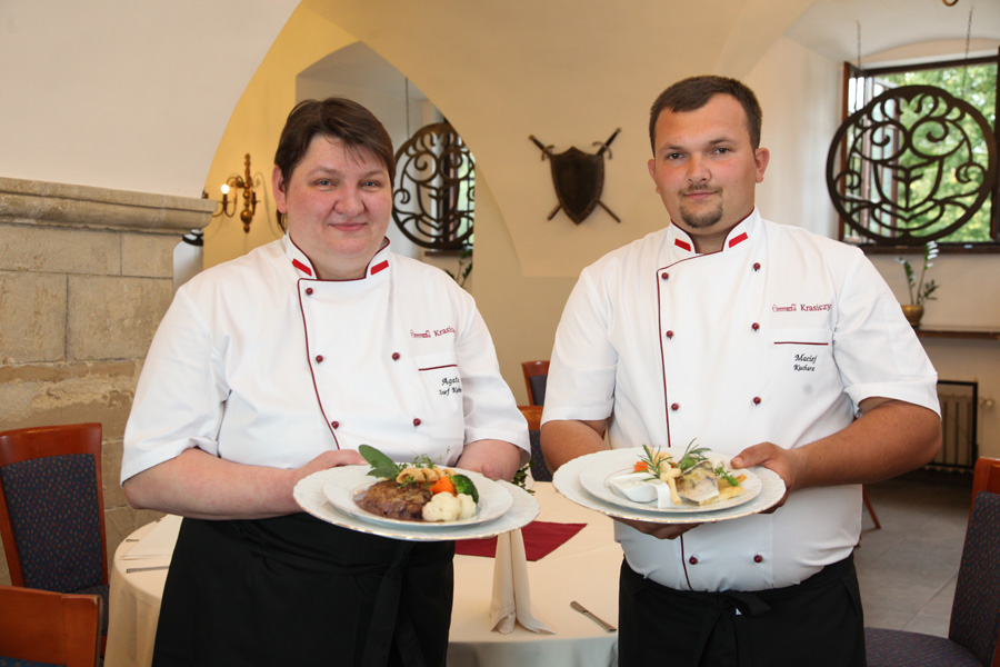 AGATA KUBIK i MACIEJ GOŁDYN, szef kuchni i kucharz w Zamku w Krasiczynie polecają: