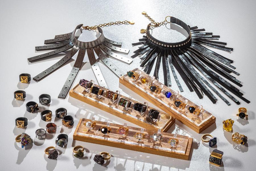 Postawili na najwyższą półkę. Używają wyłącznie włoskich, certyfikowanych skór, które są garbowane roślinnie. Bez użycia chemikaliów. Najdroższe z oferowanych na rynku. Kupują je w zaprzyjaźnionej włoskiej garbarni. Z takiej skóry powstają szerokie ażurowe bransolety i intrygujące naszyjniki. Nawet pierścionki. Te ostatnie posiadają skórzaną obrączkę, z metalowymi okuciami na dwóch końcach, między którymi umieszczony jest kamień naturalny, minerał lub perła. – To nasz pierwszy, flagowy wzór. Wymyślony przeze mnie. Wiele lat poświęciliśmy na dopracowanie tego wyrobu. Skóra na obrączkę pierścionka nie może być rozciągliwa i udało nam się tę rozciągliwość wyeliminować. Sprawiliśmy, że zachowuje się niemal jak metal.