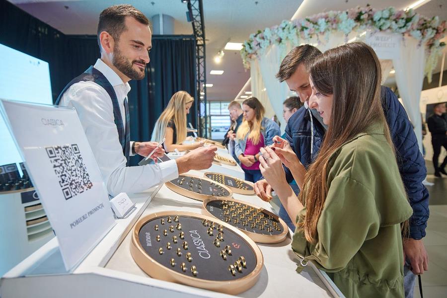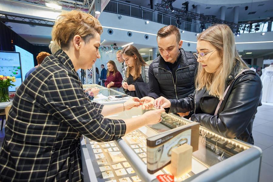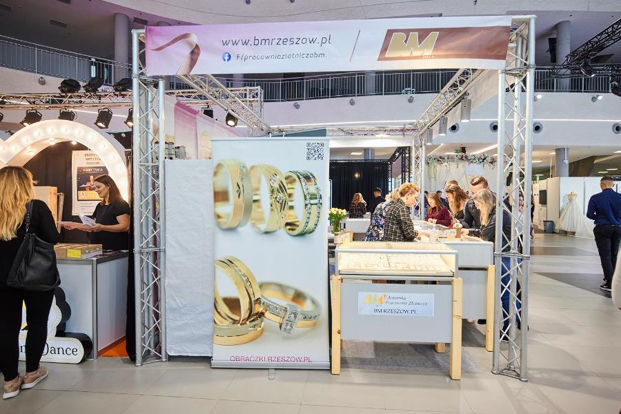 Na Targach Ślubnych jest wiele stoisk jubilerskich, na których młodzi mogą wypatrzeć i przymierzyć pierścionki zaręczynowe i ślubne obrączki. Wśród wystawców jest obchodząca 40-lecie autorska Pracownia Złotnicza BM w Rzeszowie, której doświadczeni konsultanci odpowiadają na najbardziej szczegółowe pytania dotyczące kruszców, kamieni i trwałości biżuterii. – Wszystkie projekty, od rysunku po wykonanie powstają w naszej rzeszowskiej pracowni – zapewnia Patryk Madej. – Zależy nam, by nie iść w to, co masowe, ale wyróżniać się wzorami i pomysłami. Na targach prezentujemy całą paletę wzorów, od klasycznych po bardzo oryginalne, w tym kilka całkiem nowych, które już spotkały się aprobatą klientów, m.in. bardzo ciekawe obrączki w kształcie zwiniętej śruby, z białego lub żółtego złota. Nie polecamy klientom złota o niskiej próbie 333 czy 375, bo takie obrączki w krótkim czasie zmieniają kolor, trudniej je zmniejszyć czy powiększyć. Doradzamy złoto 14-karatowe, bo z naszego doświadczenia wynika, że ono najlepiej się sprawdza i wytrzyma symboliczne 50 lat. Bywa, że klienci decydują się na platynę, ale jest ona parokrotnie droższa. Obrączkę można ozdobić kamieniami szlachetnymi i takie znajdują nabywców – na pewno można nimi zrobić niemałe wrażenie tuż po ślubie. Ale wciąż nie brakuje tych, którzy wybierają gładkie, klasyczne krążki. Praktyczne i zawsze modne – podsumowuje przedstawiciel Pracowni Złotniczej BM.
