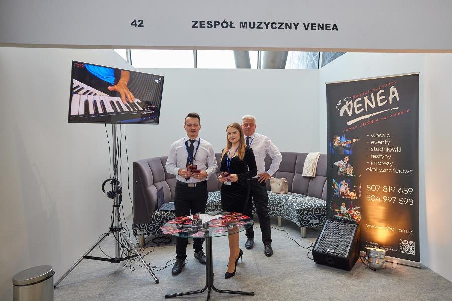 Na targach w Jasionce przyszli nowożeńcy mogą zarezerwować salę weselną, zespół muzyczny, kamerzystę, fotografa, a nawet ślubną limuzynę czy mobilny bar kawowy lub … wszystko w jednym pakiecie. Taką ofertę skonstruował w domowym zaciszu, podczas lockdownu, Mariusz Stącel, założyciel Szkoły Muzycznej Yamaha w Rzeszowie. Jego Weselny Pakiet Chicago obejmuje zespół muzyczny na przyjęcie i oprawę muzyczną ceremonii w kościele, DJ-a, samochód do ślubu i samochód do rozwożenia gości, fotobudkę, biesiadę przy stołach i wodzireja, a także noeonowe napisy i ekrany, oświetlenie sali balowej, ciężki dym do pierwszego tańca, a także naukę tegoż podczas czterech indywidualnych lekcji. – Gdyby wszystkie te elementy zamówić osobno, koszt wyniósłby ponad 20 tys. zł. My oferujemy je za 12 tys. zł – podkreślają konsultanci na stoisku Chicago.