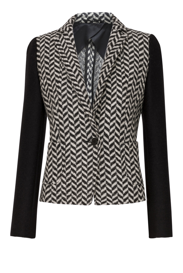 Styl całkowicie deseniowy, obsesyjnie wykorzystujący jeden wzór od stóp do głów koncentruje się na pepitce. Oto dwa przykłady: tweedowy płaszcz w czerni, szarym i czerwieni oraz lekkie sukienki w kolorze czarnym, szarym i perłowym.