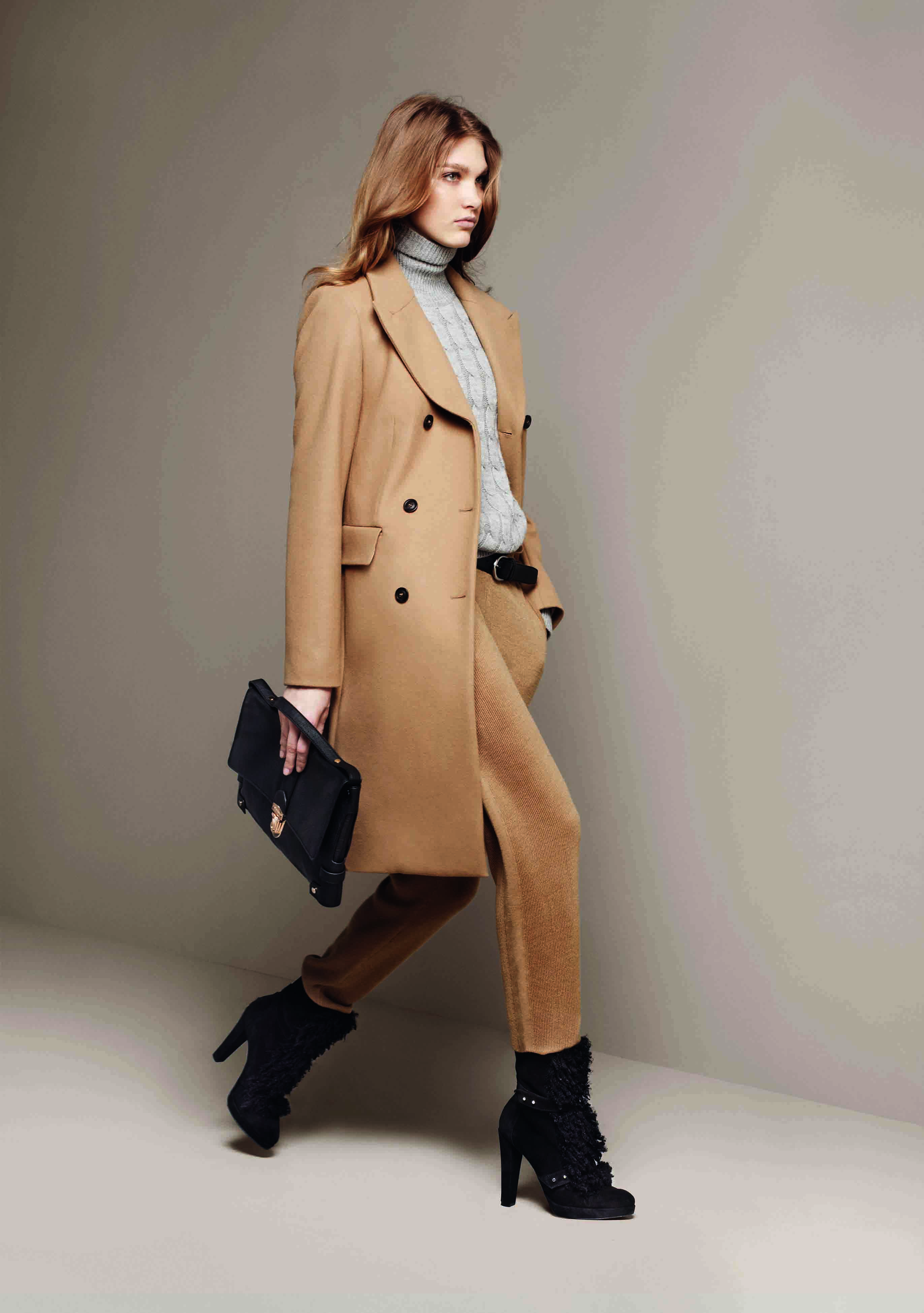 Doskonale skrojony płaszcz z wielbłądziej wełny jest ponadczasowym elementem garderoby, ale założony z miękkimi kaszmirowymi spodniami staje się modowym trendem. Spodnie cygaretki w połączeniu z płaskimi butami są szykowne, ale dodatkowej osobliwości zyskują dzięki połączeniu z bluzą z kaszmirowym kapturem.