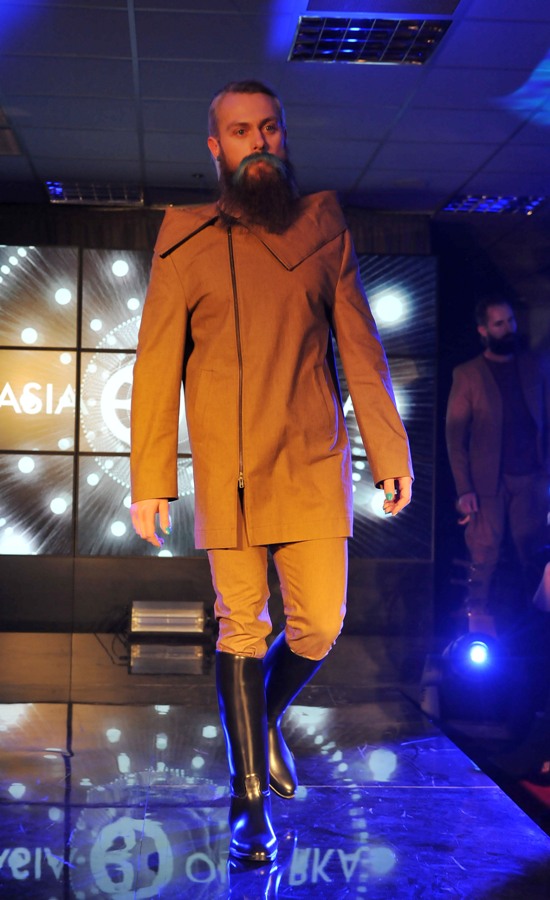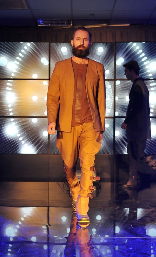 A to oznacza, że na pokazie znalazły się stroje męskie na wszystkie prawie okazji. Były płaszcze, marynarki, bluzy i spodnie. Uwagę przyciągały płaszcze z asymetrycznymi kołnierzami i spodnie zapinane na klamry w dolnej części nogawek, a mocno poszerzane od góry -  nasuwają się analogie do bryczesów, albo spodni oficerów z czasów II wojny światowej.