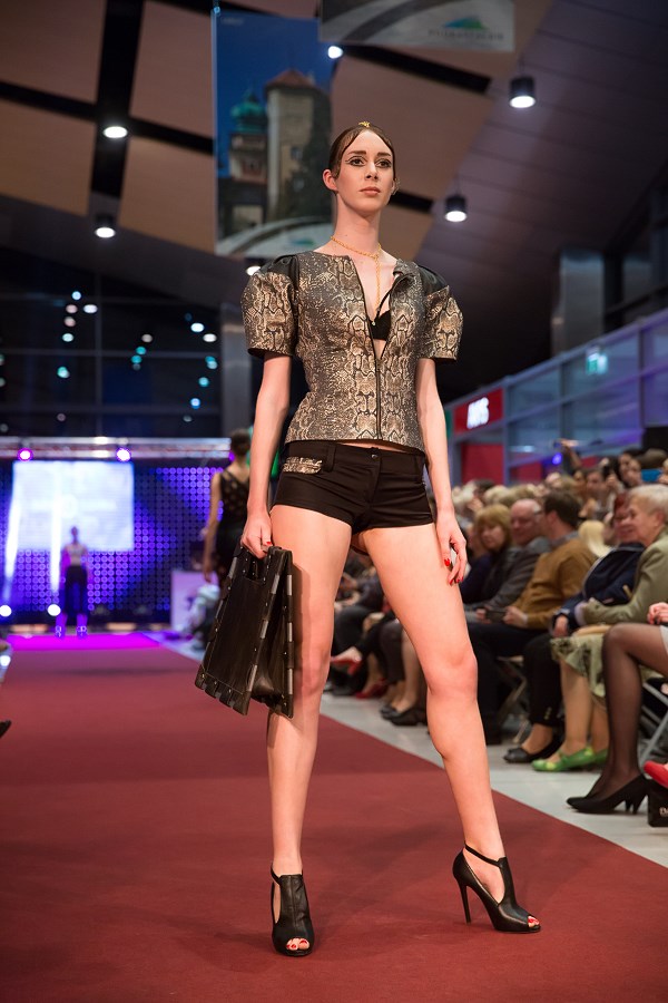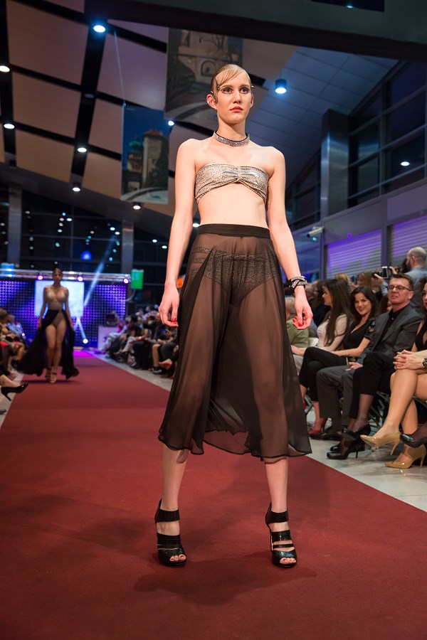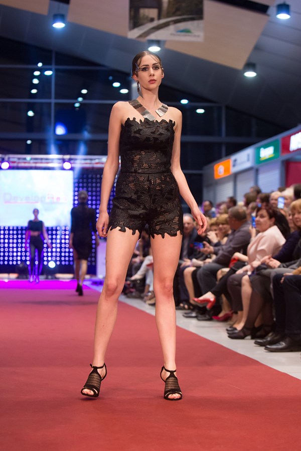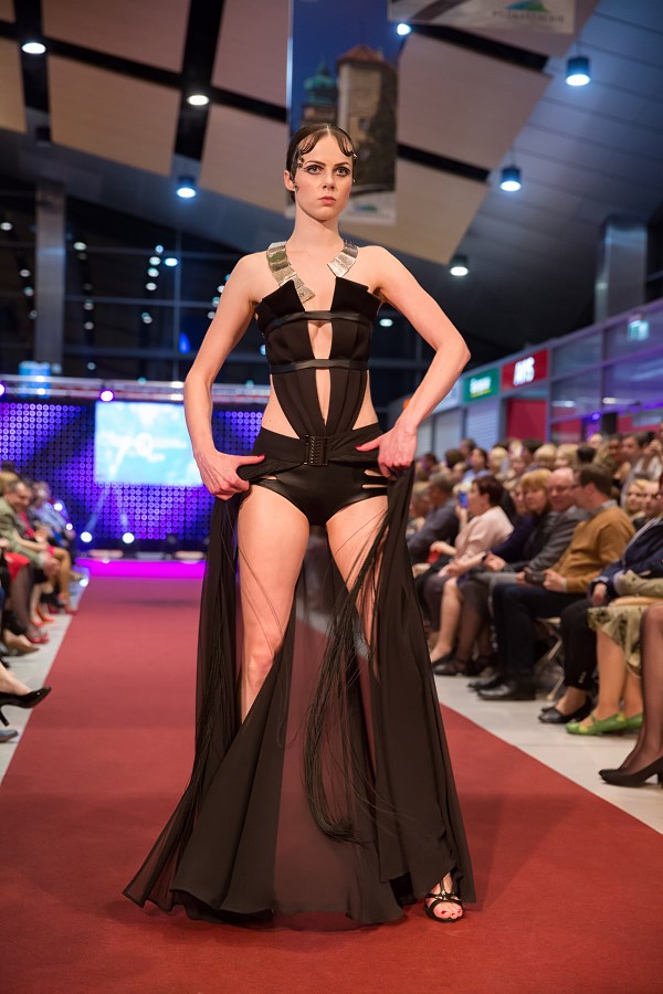 Występ na pewno wymagał od nich odwagi, ale i kolekcja rzeszowskiej projektantki adresowana jest do odważnych i zdecydowanych kobiet. Zawiera sukienki, spódnice, topy, spodnie, kombinezony i stroje kąpielowe. Dużo w niej ażurów, przezroczystości i odważnych cięć. To już znak rozpoznawczy marki BO. Tropem tym projektantka podąża na różne sposoby i proponuje np. zjawiskową sukienkę w całości uszyta z koronki. W niektórych sukienkach łączone nitami skórzane pasy, układają się w ażur, który wkomponowany zostaje we fragment mocno dopasowanej kreacji, ukazując kawałek uda lub pleców. W innych – pojawia się głęboki dekolt i wysokie rozcięcie na dole, które przysłania jedynie trochę frędzli. Frędzle falują także przy tiulowych spódnicach, a koronka pojawia się na wąskich spodniach i mocno wyciętych spodenkach.
