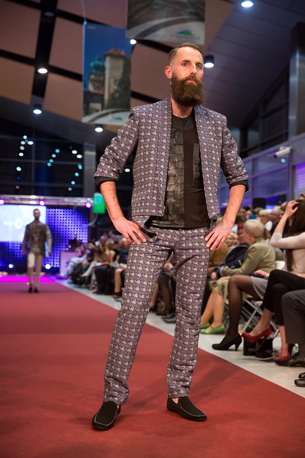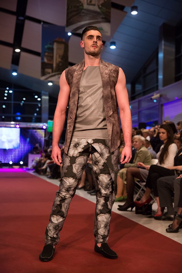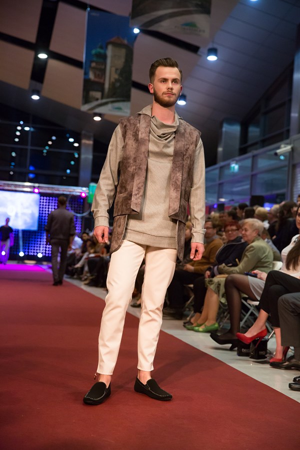 Kolekcja męska to już inna bajka, chociaż męskie topy korespondowały ze skórzanymi akcentami w damskich kreacjach. W przypadku panów dużo jest czarowania deseniami na spodniach i ciekawymi wzorami kamizelek i marynarek bez guzików. Brązy, beże i szarości za sprawą wzorzystych tkanin i interesujących fasonów, okazały się kolorami, z których nie wieje nudą.